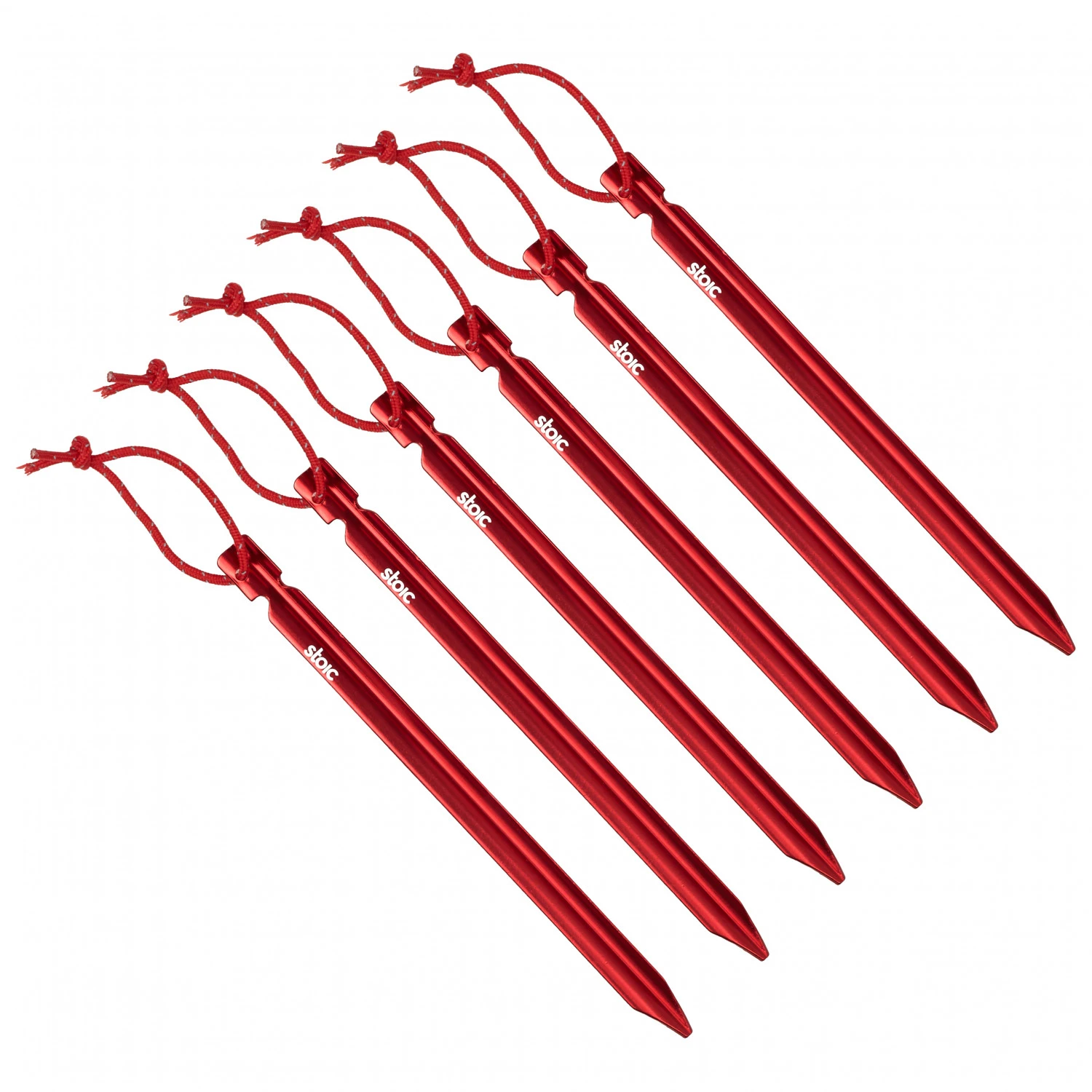 Les AL Y-Stake 18 de Stoic sont fabriqués en aluminium léger et permettent d’attacher solidement la tente. Les six piquets ne pèsent que 75 grammes ! La forme en Y assure un maintien ferme et les boucles pratiques permettent de les retirer facilement du sol. Grâce à leur couleur rouge, ils sont bien visibles et vous ne les perdez pas facilement lors du montage et du démontage.